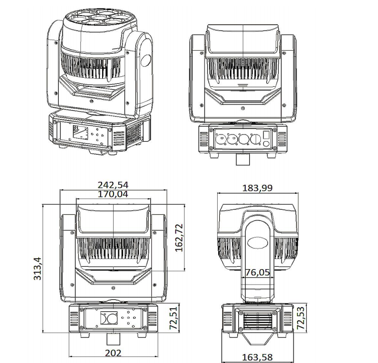 功能效果:具有 CT0,染色,光束,效果模式(漩涡,万花筒),前置镜盘可变向无极旋转,灯珠单颗点控控制